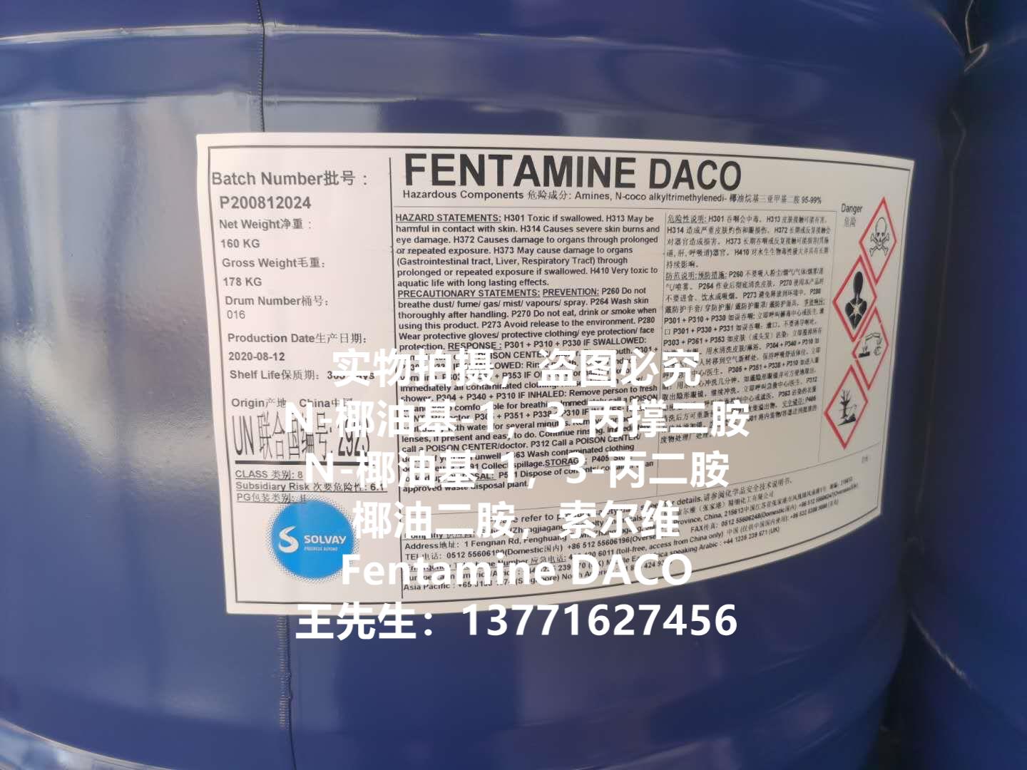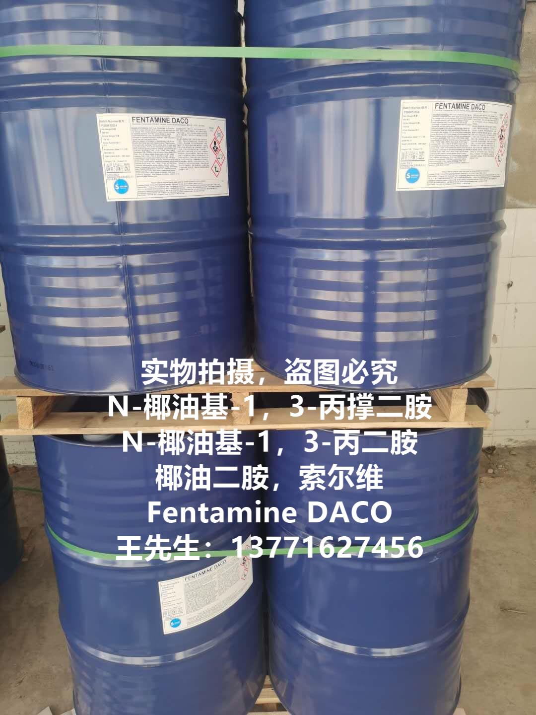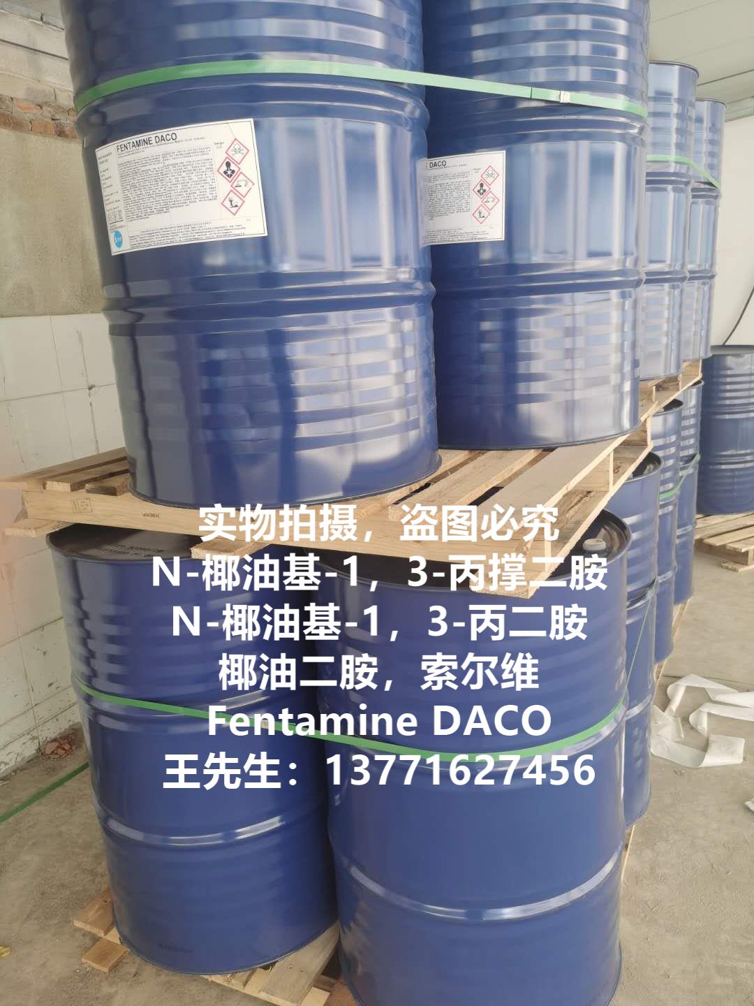 包裝 | N-椰油基-1,3-丙二胺(椰油二胺,椰油丙撐二胺,DACO)為桶裝160公斤/桶包裝,貯于室內(nèi)陰涼通風(fēng)處,防潮、嚴(yán)防曝曬,貯存期十二個(gè)月。 | |